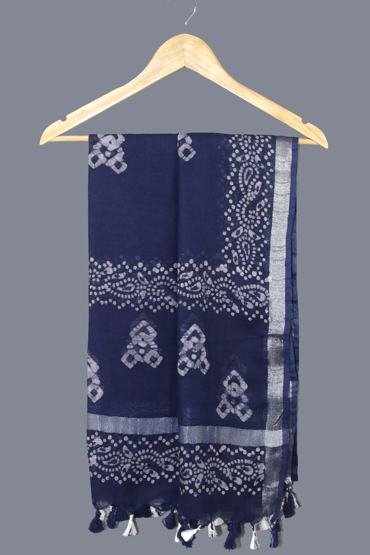 Be the first to review “Linen Scarf Stole with Tussle – Royal Blue Batik Print”